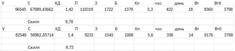 Где твои результаты скила? Уже три таблицы есть по расчёту скиловости.