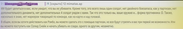 Партизан: 5 солдат (этот класс входит в состав отряда) Удвоенный боезапас Дополнительные ТнТ ИИ стреляет в вас при первой же возможности (как обычно)