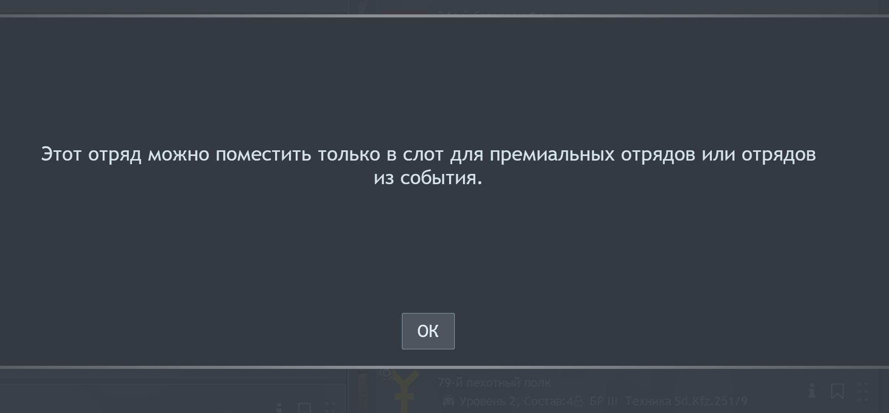 Отряд почему-то ставится только в доп слот и имеет кд в 1 отряд (то есть можно брать его через раз). Не понял, зачем это сделано.
